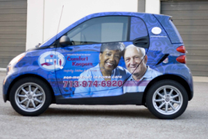 Smart Car wraps boast the lowest cost-per-impression rate compared to any other form of advertising media and are not only affordable for large brands that elect to use vehicle wraps as a core advertising strategy, but also for small and medium-sized businesses. You can’t shut off the message on a vehicle, like you can on a TV, it is displaying your message and providing valuable advertising 24/7.