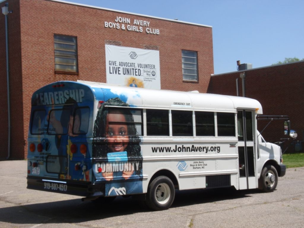 North Carolina – Cranky Creative assisted the Boys and Girls Club of NC expand their visibility by wrapping two shuttle buses with their inspirational graphics. Showcasing the smiles of children’s faces alongside key words that say what they do for the children they serve was an effective strategy for the organization.